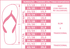 – slim, indicada para o público feminino, com numeração do 23/24 a 43/44;