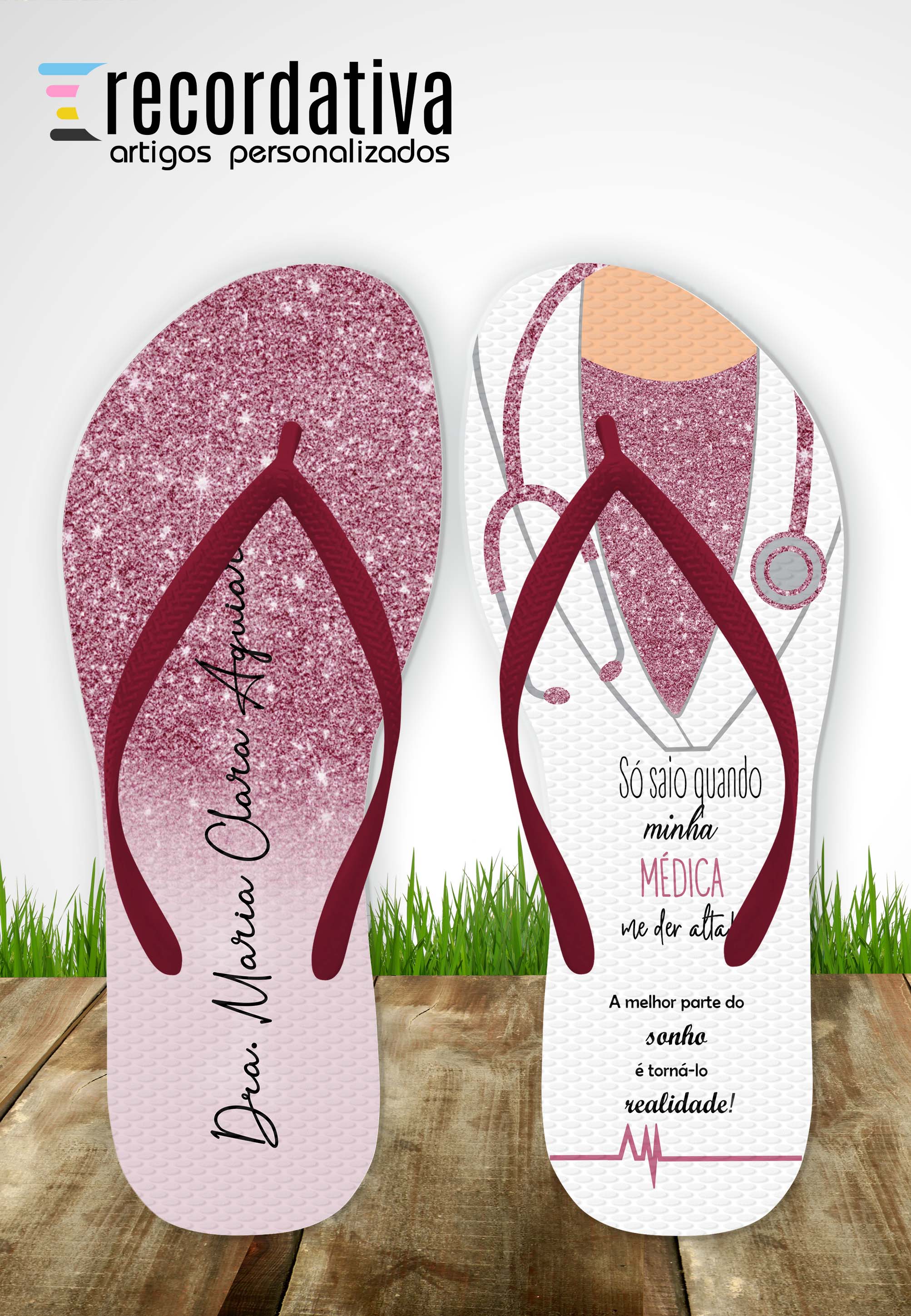 Chinelo Formatura medicina personalizado efeito glitter brilho marsala estetoscopio – MED 157